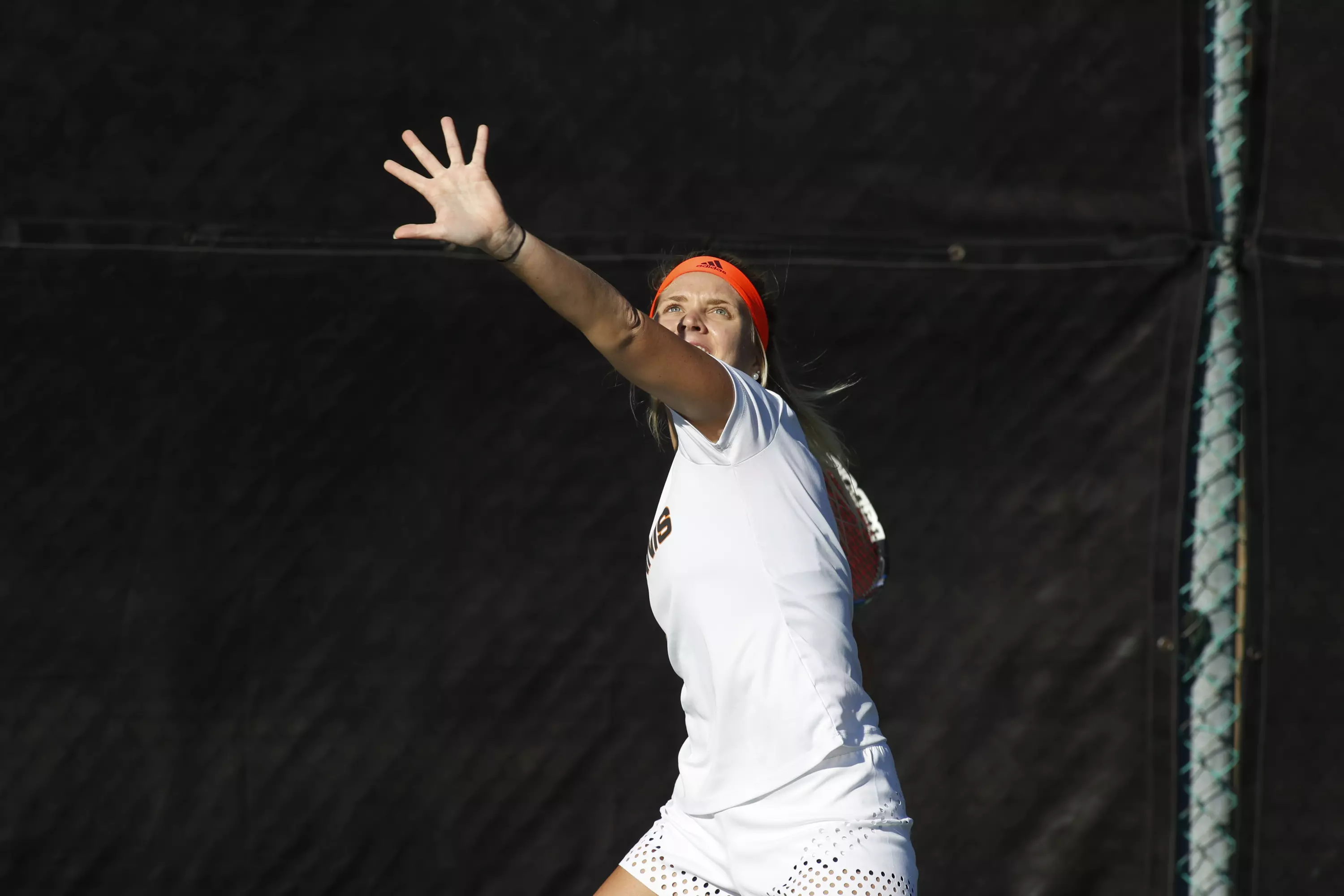 The Mustangs tied the match up with a win at No. 2 and took a brief lead at with a straight-set win at No. 1. Jessica Birowski tied things back up with a 6-3, 6-3 win at No. 4 and Wichert kept things tied with a 6-2, 4-6, 6-1 win at No. 5 as a pair of matches concluded at the same time.
